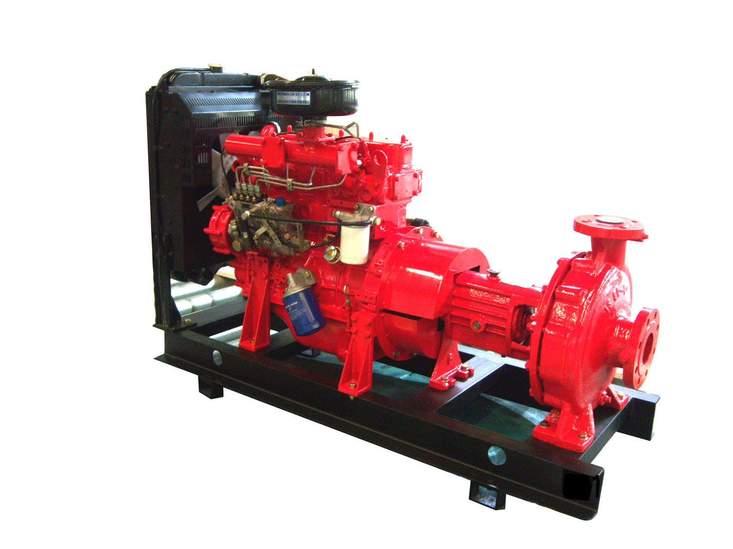 Fire-fighting pump set, designed and developed according to the requirements for both home and abroad market, is a kind of diesel engine driven direct coupling water pump set, which has the characteristics of easy starting, strong overload capacity, compact structure, convenient maintenance, simple operation, high automatic level, and is widely applied in flood protection, drain floods, irrigation, fire-fighting, chemical industry, mine, industry, daily life, construction, city water supply etc.